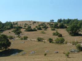 D. Gigante: Brometo xerofilo su calcare dell'associazione Asperulo purpureae-Brometum erecti colonizzato da ginepro rosso (M. Serano, PG) |